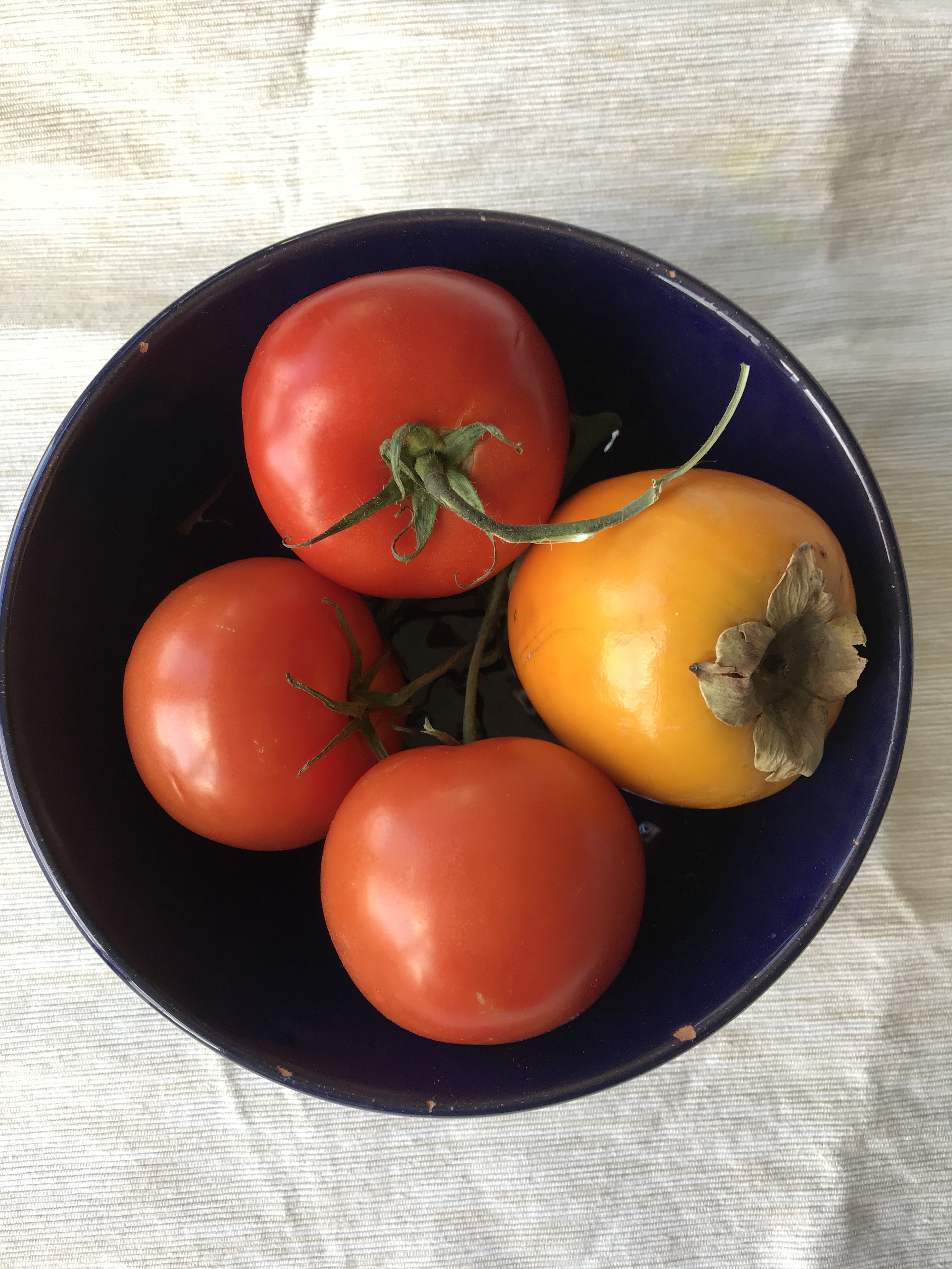 Gorgeous, sweet persimmon. Juicy, tangy tomato. Perfect combo. A dollop will compliment almost anything. As a dipping sauce or slathered on your burger or accompanying a simple plate of daal and khichri. Ramp up the heat level to your preference.