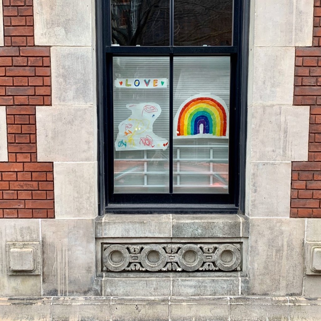 I felt especially cooped up today. Went for a run in the morning. Paranoia has a way of creeping in till you are behaving in a way alien to yourself. The moment I stepped out and put on my headphones, I teared up. The world felt strange and ominous and so very loved and missed. Cherry blossoms everywhere, spring in the air. Yet people gave each other lots of space to walk around, avoided eye contact (including me) as if transmission would happen by not doing so, a mother standing in the window with her newborn child, an older man at his desk facing the window. A woman walked by with a strong smell of perfume and my first thought was, did I just get too close to her? As I ran, my mind slowly detached and the music took over. Gradually, I noticed one little rainbow, then another. I remembered reading somewhere that kids were putting up rainbows in windows in a show of resilience and hope. It made me smile and relax. As I paid attention, I saw many more all along the way.